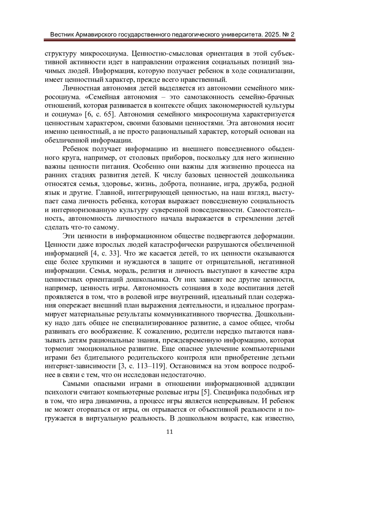 3. Бочарова, Н. И. Социально-педагогические факторы риска формирования компьютерной зависимости детей дошкольного возраста / Н. И. Бочарова, А. Г. Гринблат. - Текст: непосредственный // Ученые записки Орловского государственного университета. - 2021. - № 1 (90). - С. 113-119.