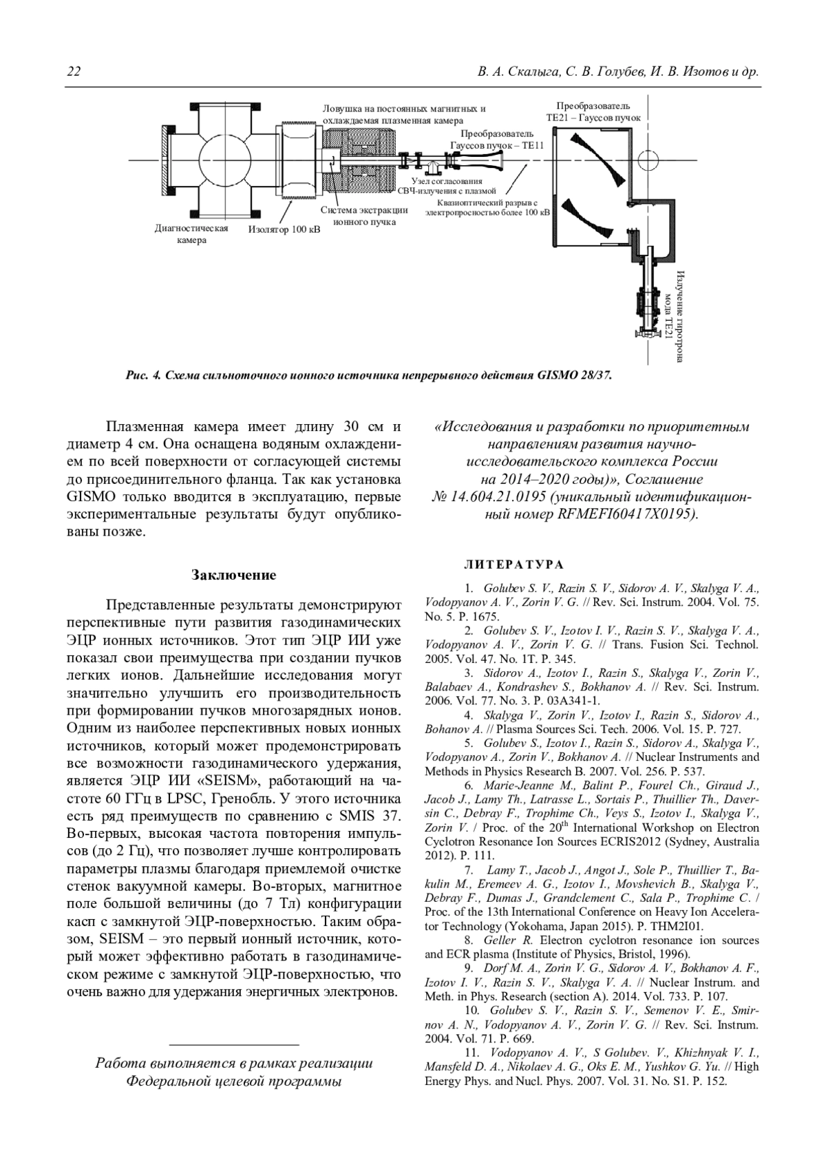 4. Skalyga V., Zorin V., Izotov I., Razin S., Sidorov A., Bohanov A. // Plasma Sources Sci. Tech. 2006. Vol. 15. P. 727.