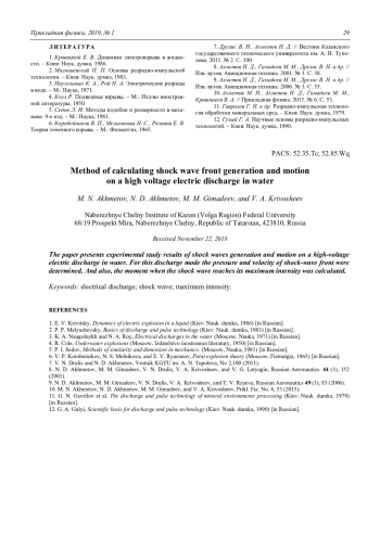 Ахметов М. Н., Ахметов Н. Д., Гимадеев М. М., Кривошеев В. А. Метод расчёта формирования и движения фронта ударной волны в высоковольтном электрическом разряде в воде 25