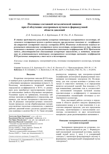 Золотухин Д. Б., Бурдовицин В. А., Окс Е. М., Панченко Н. А. Потенциал составной металлической мишени при её облучении электронным пучком в форвакуум-ной области давлений 30