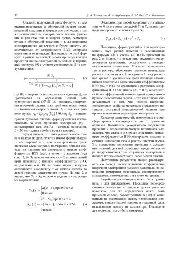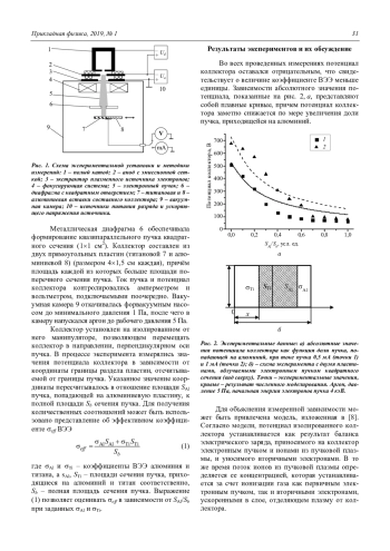 Результаты измерений и расчетов показывают однозначную связь потенциала изолированного коллектора, облучаемого электронным пучком в среднем вакууме, с коэффициентом вторичной электронной эмиссии материала коллектора. Такая взаимосвязь между φ и σ обеспечивает возможность оценки коэффициента вторичной электронной эмиссии различных материалов, включая диэлектрики.