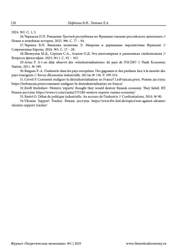 31. Crevel Р. Comment endiguer la désindustrialisation en France? LesFrancais.press. Режим доступа: https://lesfrancais.press/comment-endiguer-la-desindustrialisation-en-france.