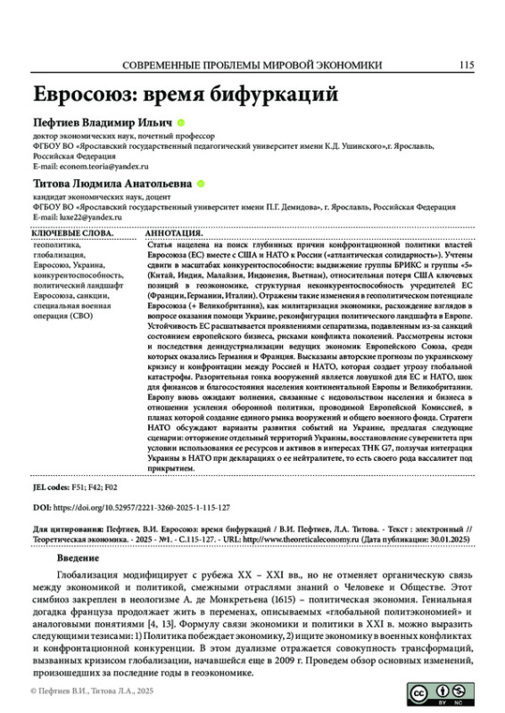 16. Пефтиев В.И., Титова Л.А. Евросоюз в геополитике: закат суверенитета. Ярославль: РИО ЯГПУ, 2024. 179 с.