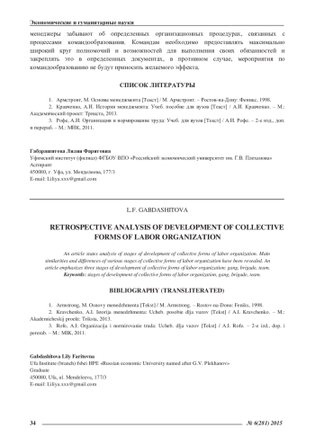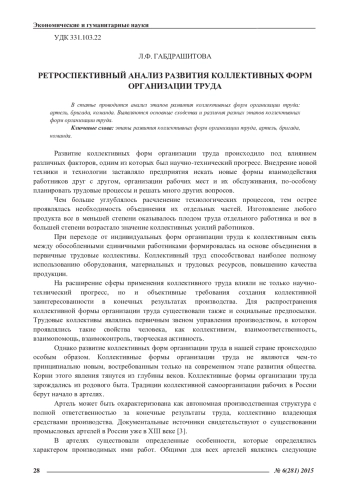 Статья: РЕТРОСПЕКТИВНЫЙ АНАЛИЗ РАЗВИТИЯ КОЛЛЕКТИВНЫХ ФОРМ ОРГАНИЗАЦИИ ТРУДА (2015)