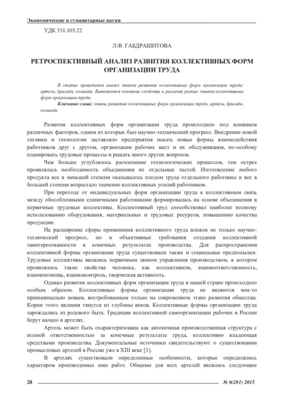 ГАБДРАШИТОВА Л. Ф. РЕТРОСПЕКТИВНЫЙ АНАЛИЗ РАЗВИТИЯ КОЛЛЕКТИВНЫХ ФОРМ ОРГАНИЗАЦИИ ТРУДА // ЭКОНОМИЧЕСКИЕ И ГУМАНИТАРНЫЕ НАУКИ. 2015. № 6 (281)