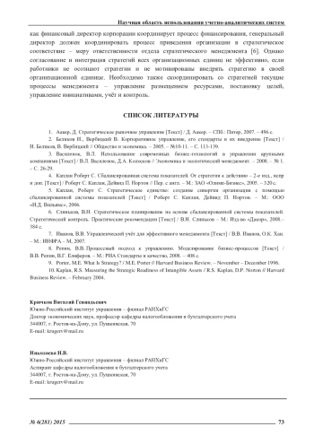 6. Слиньков, В.Н. Стратегическое планирование на основе сбалансированной системы показателей. Стратегический контроль. Практические рекомендации [Текст] / В.Н. Слиньков - М.: Изд-во «Дакор», 2008.- 384 с.