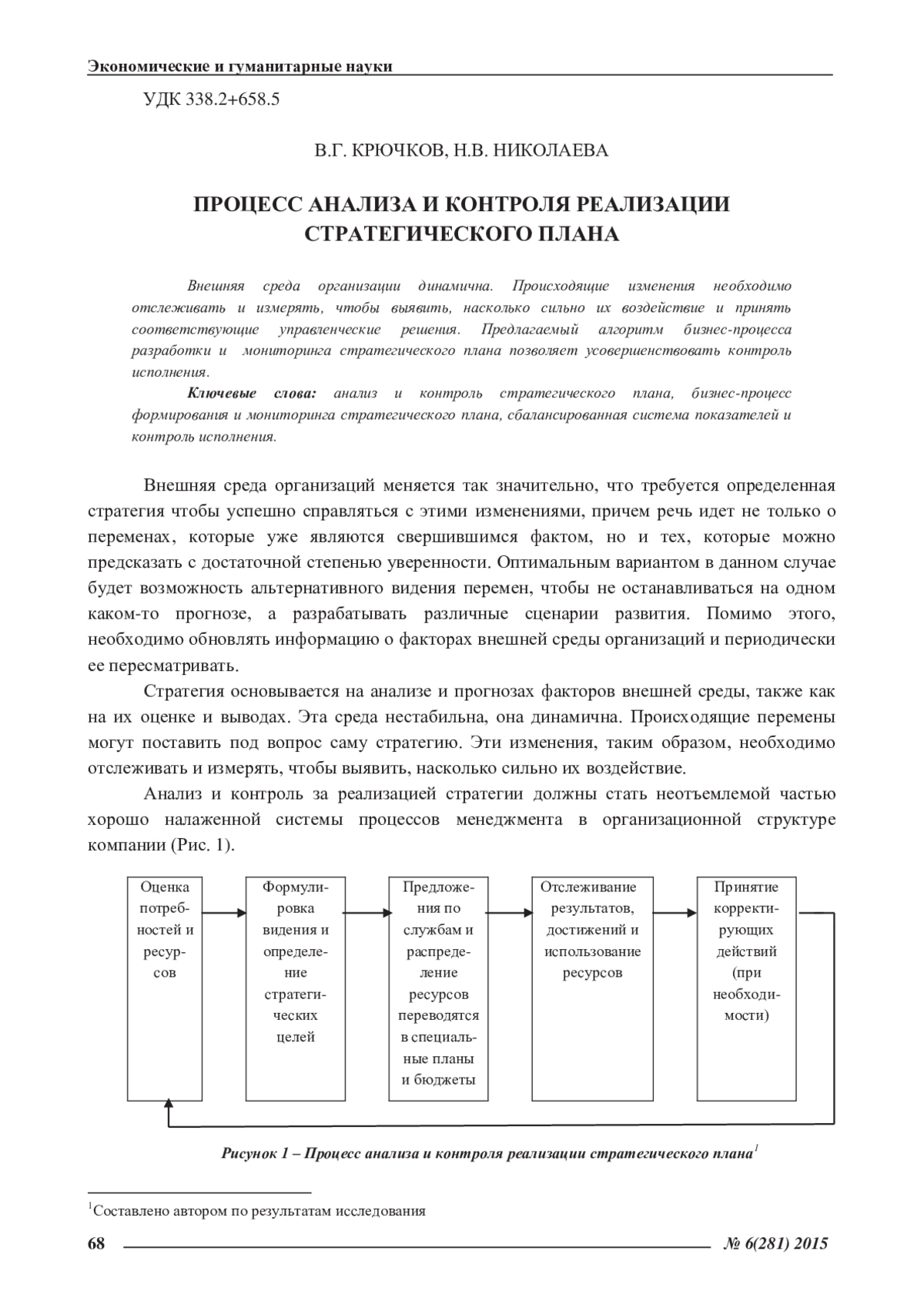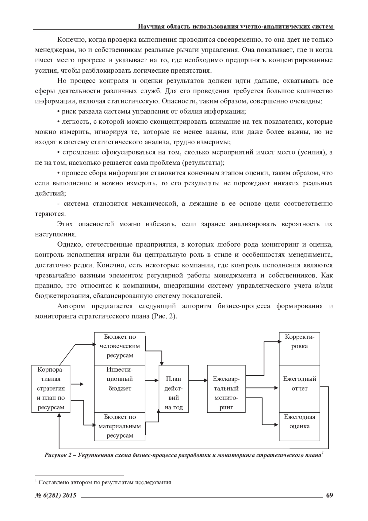 Внешняя среда организации динамична. Происходящие изменения необходимо отслеживать и измерять, чтобы выявить, насколько сильно их воздействие и принять соответствующие управленческие решения. Предлагаемый алгоритм бизнес-процесса разработки и мониторинга стратегического плана позволяет усовершенствовать контроль исполнения
