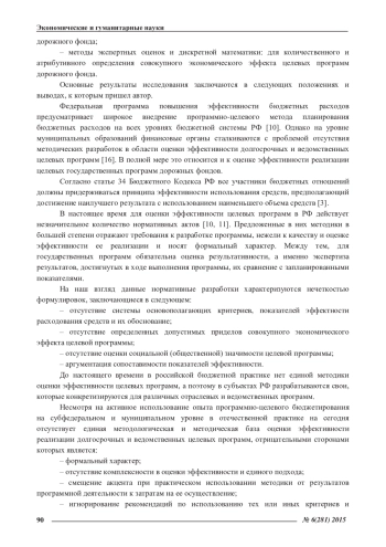 16. Ярошенко, Т.П. Методика оценки эффективности реализации долгосрочных и ведомственных целевых программ /Т.П. Ярошенко//Управление экономическими системами: Электронный научный журнал. -2011. -№ 10. -Режим доступа: http://www.uecs.ru/finansi-i-kredit/item/705-2011-10-20-07-30-00 (дата обращения: 27.02.2015). EDN: MJLXRB