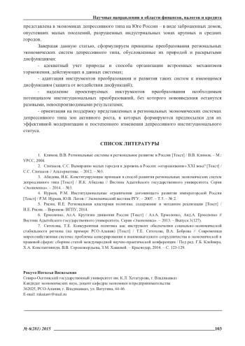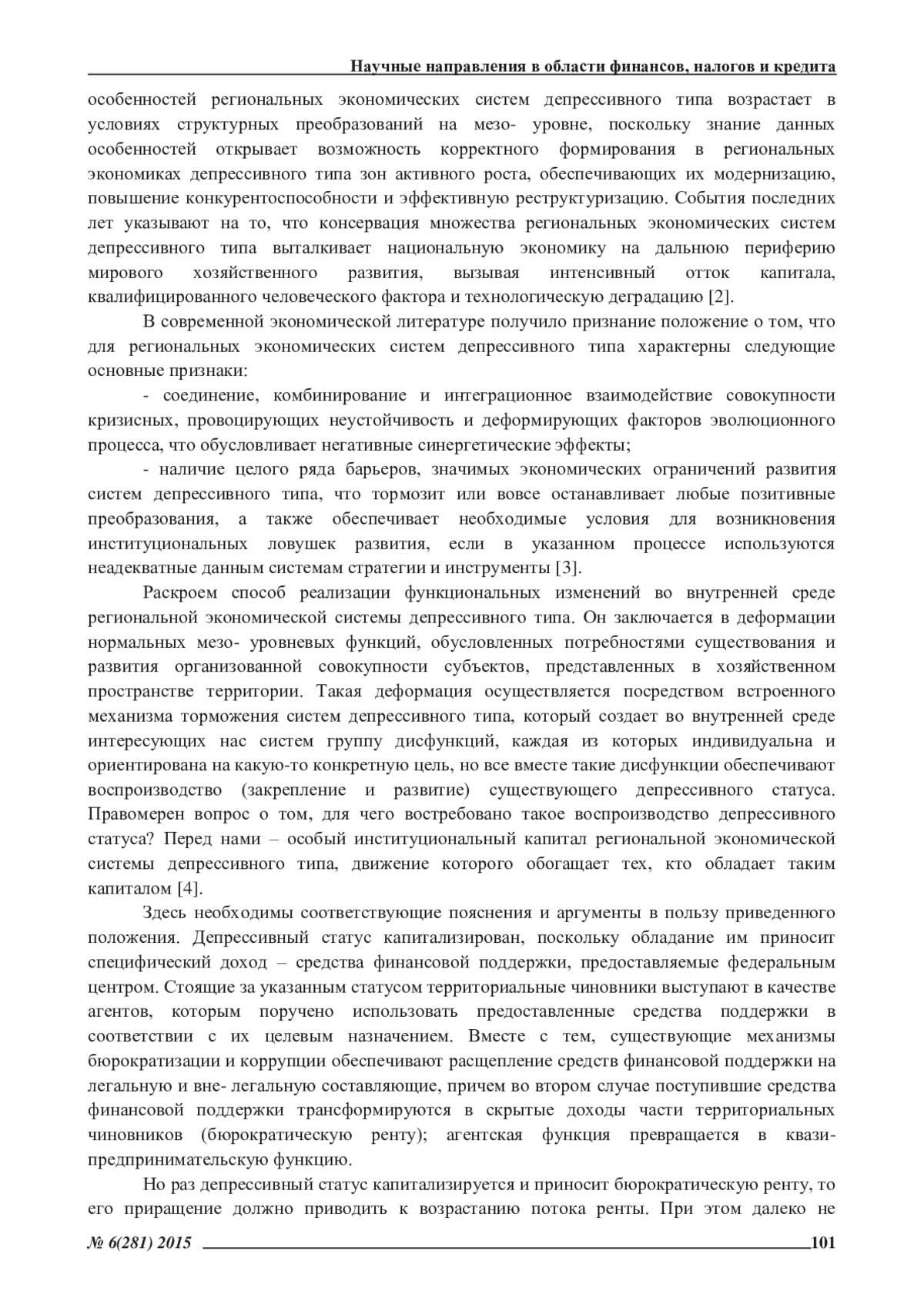 Статья: ДИСФУНКЦИИ РЕГИОНАЛЬНЫХ ЭКОНОМИЧЕСКИХ СИСТЕМ ДЕПРЕССИВНОГО ТИПА (2015)