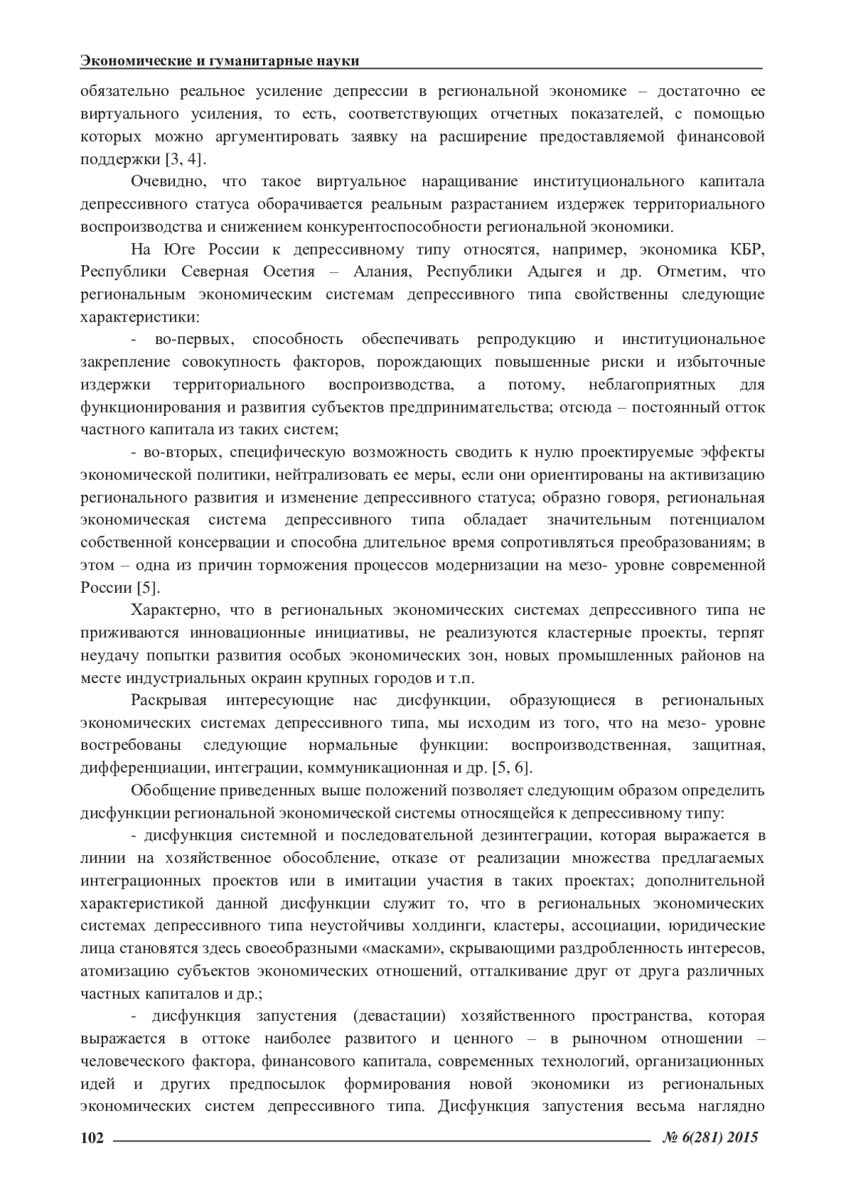 РАКУТА Н. В. ДИСФУНКЦИИ РЕГИОНАЛЬНЫХ ЭКОНОМИЧЕСКИХ СИСТЕМ ДЕПРЕССИВНОГО ТИПА // ЭКОНОМИЧЕСКИЕ И ГУМАНИТАРНЫЕ НАУКИ. 2015. № 6 (281)
