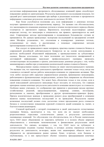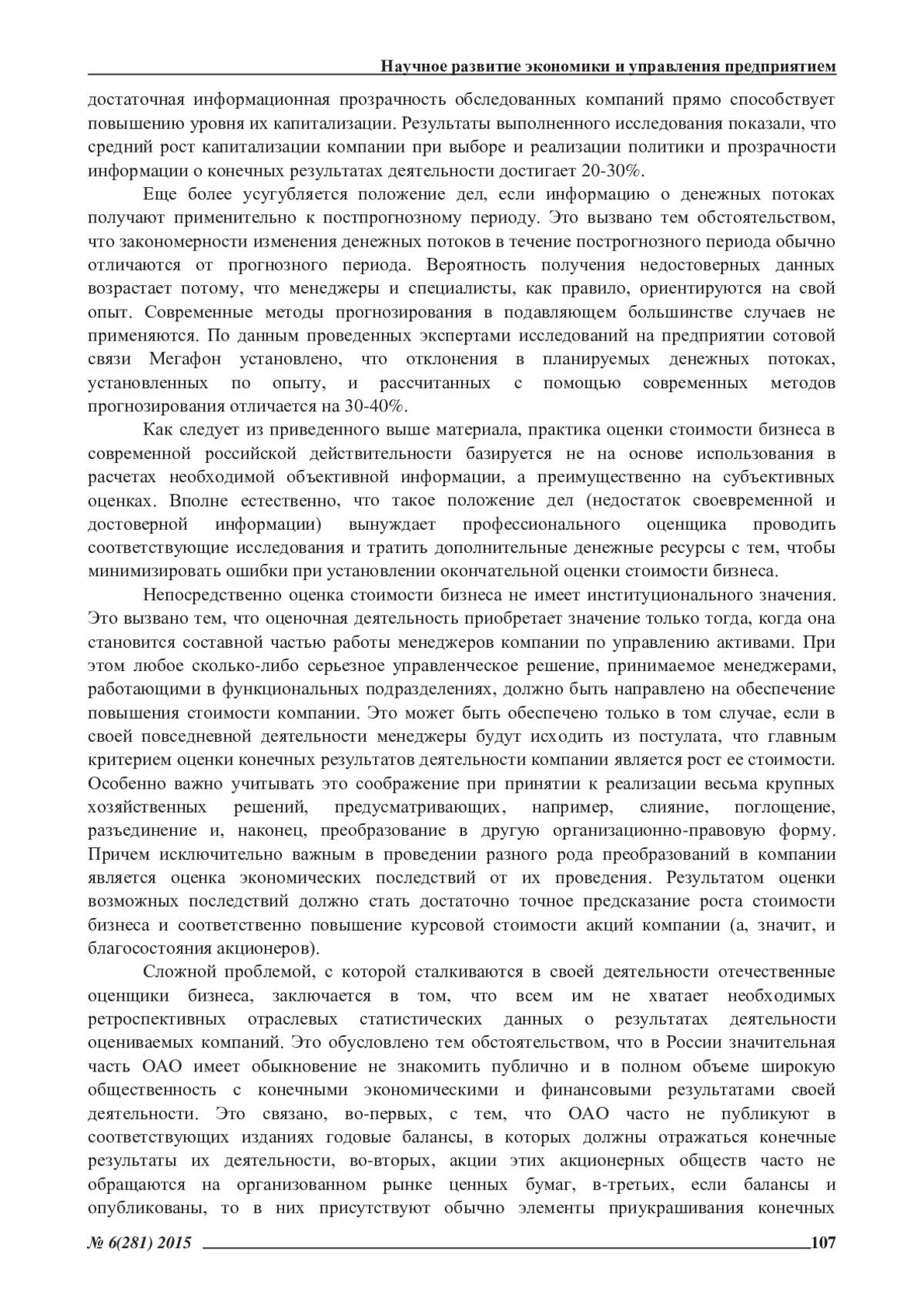 Статья: ПРОБЛЕМНЫЕ ВОПРОСЫ ВНЕДРЕНИЯ СИСТЕМЫ ФОРМИРОВАНИЯ ОЦЕНКИ СТОИМОСТИ БИЗНЕСА НА ПРЕДПРИЯТИИ (2015)