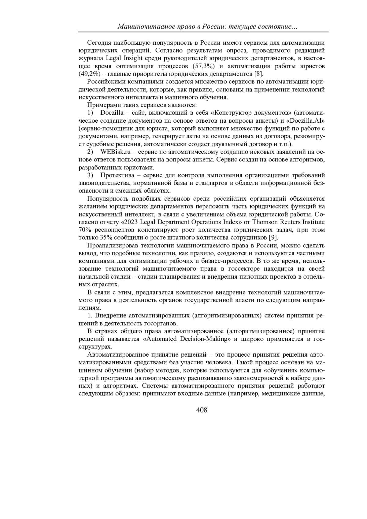 8. Цшайге Х. Автоматизация юридических департаментов: итоги опроса Legal Insight // Legal Insight. 2023. № 10 (126). - URL: https://legalinsight.ru/articles/avtomatizacziya-yuridicheskih-departamentov-itogi-oprosa-legal-insight/. (дата обращения: 15.11.2024).