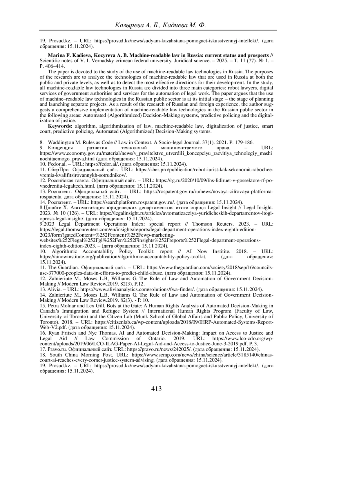 1. Waddington M.Rules as Code // Law in Context. A Socio-legal Journal. 37(1). 2021. P. 179-186.