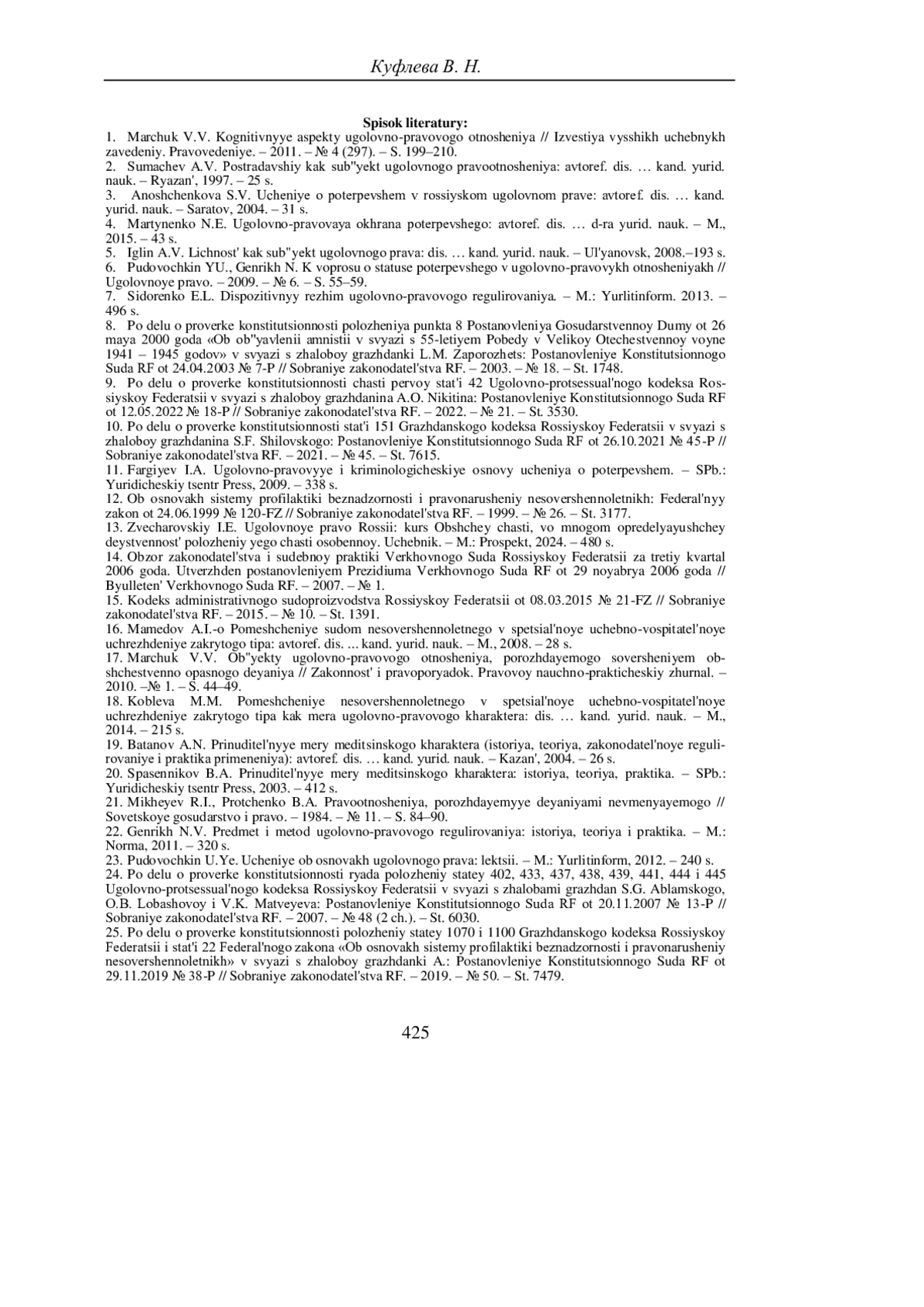 КУФЛЕВА В. Н. ЛИЦО, СОВЕРШИВШЕЕ ПРЕСТУПЛЕНИЕ, В КОНТЕКСТЕ УЧЕНИЯ О СУБЪЕКТАХ УГОЛОВНО-ПРАВОВОГО ОТНОШЕНИЯ // УЧЕНЫЕ ЗАПИСКИ КРЫМСКОГО ФЕДЕРАЛЬНОГО УНИВЕРСИТЕТА ИМЕНИ В. И. ВЕРНАДСКОГО. ЮРИДИЧЕСКИЕ НАУКИ. 2025. ТОМ 11(77). №1