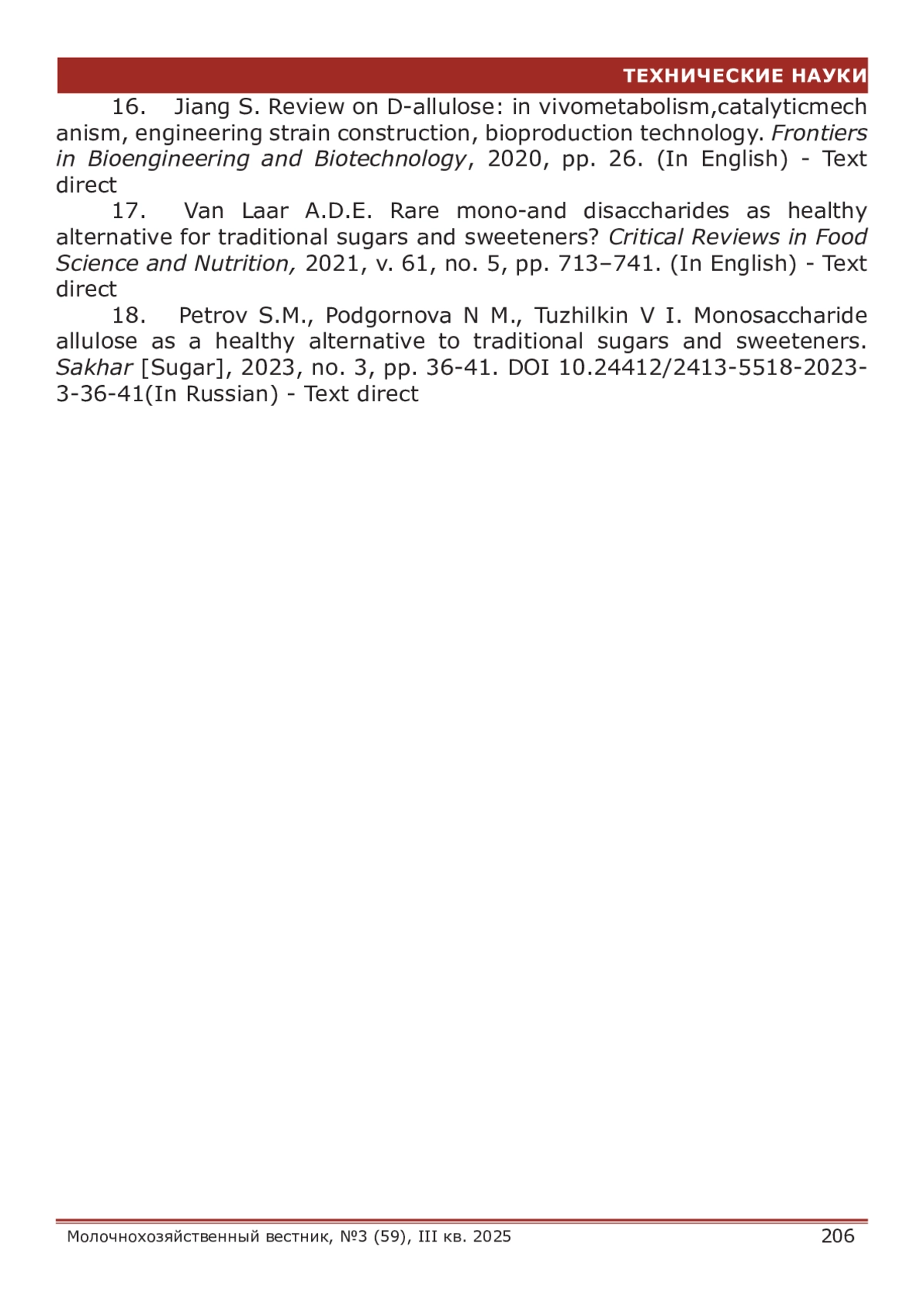 17. Van Laar A.D.E. Rare mono-and disaccharides as healthy alternative for traditional sugars and sweeteners? Critical Reviews in Food Science and Nutrition, 2021, v. 61, no. 5, pp. 713-741. (In English) - Text direct.