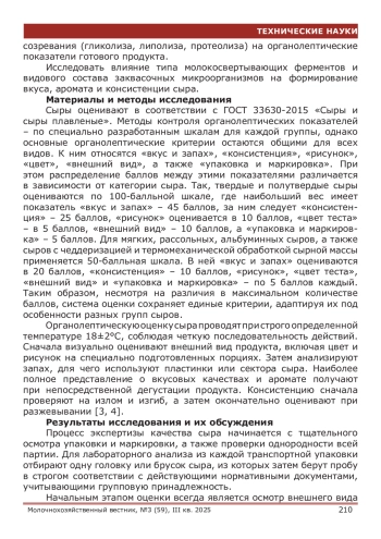4. Делицкая, И.Н. Значение органолептической оценки в технологическом процессе производства сыра / И.Н. Делицкая, В.А. Мордвинова // Переработка молока. - 2024. - № 10 (300). - С. 12-13.