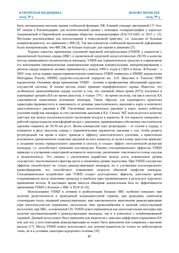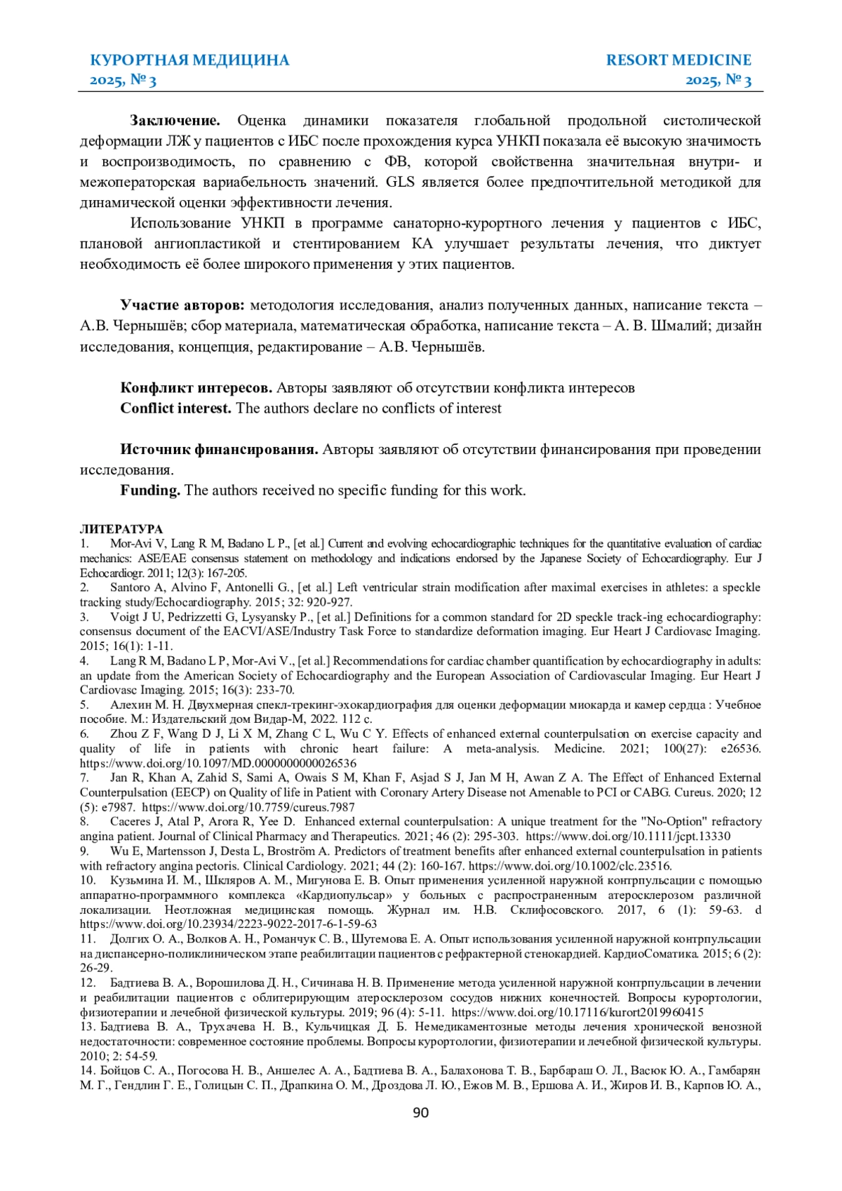 Выводы. Показана предпочтительность методики спекл-трекинг-эхокардиографии по сравнению с фракцией выброса левого желудочка для оценки сократимости миокарда в динамике. Доказано, что использование УНКП улучшает результаты санаторно-курортного лечения данной категории больных.