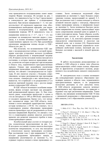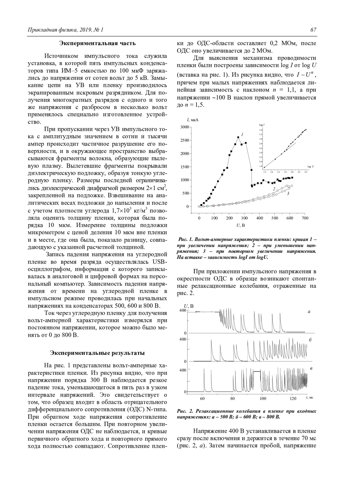 Буркова Л. А., Иванов Д. К., Иванов К. Г., Щербаков А. П. Осцилляции напряжения в тонких углеродных пленках в области отрицательного дифферен-циального сопротивления 66