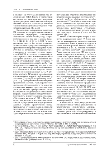 Введение. Анализ международно-правовых оценок механизма легитимации интервенции США и других стран НАТО в Ливию в 2011 г. свидетельствует о неоднозначном восприятии в научно-исследовательских кругах оснований силового вмешательства стран Запада в дела североафриканского государства. Особый интерес представляют логика и аргументация тех правоведов, которые сочли допустимым оправдать с международно-правовой точки зрения это вооружённое вторжение.