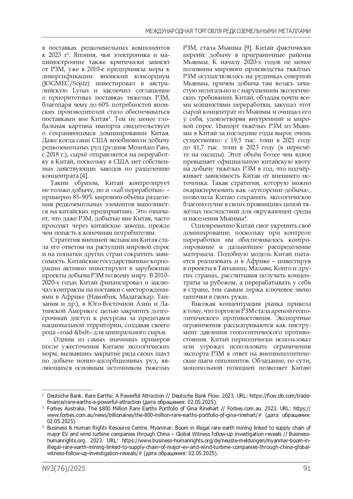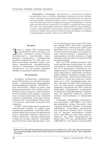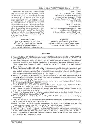 ЧЕРКАСОВ М. Я., ЛЕВИН Ю. А. МЕЖДУНАРОДНАЯ ТОРГОВЛЯ РЕДКОЗЕМЕЛЬНЫМИ МЕТАЛЛАМИ: СТРАТЕГИИ ИГРОКОВ И ГЕОПОЛИТИЧЕСКОЕ ПРОТИВОСТОЯНИЕ // ПРАВО И УПРАВЛЕНИЕ. XXI ВЕК. 2025. ТОМ 21, № 3