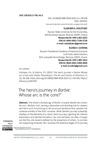 Особенности драматургии фильма «Барби» проявляются в сочетании двух арок персонажей - одна, арка Барби, выполняет декоративную, отвлекающую внимание зрителя функцию, другая, арка Кена, играет роль несущей конструкции, поддерживающей связное целое всей архитектуры киноповествования. Внешне все элементы пути героини, указывающие на ее внутреннее путешествие и, как следствие, формирование идентичности, присутствуют, однако ее «Я» не перестраивается, на протяжении фильма Барби остается продуктом чужих проекций, тогда как персонаж второго плана, Кен, проходя необходимые этапы пути, включая «ошибочное прозрение» и «неверный план действий», достигает сепарации, осознания себя как отдельного, самостоятельного субъекта, преодолевшего состояние зависимости и слияния с объектом любви. Барби превращается в человека физически, но внутренне остается куклой, в то время как Кен, пройдя испытания, проживает психическое рождение и перед ним открывается перспектива становления.