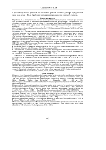 СЕЛИВЕРСТОВ В. И. ПРОТИВОДЕЙСТВИЕ ПРЕСТУПНОСТИ С ОПОРОЙ НА РЕСОЦИАЛИЗАЦИЮ: КОНЦЕПТУАЛЬНЫЙ ВЗГЛЯД ИССЛЕДОВАТЕЛЯ // УЧЕНЫЕ ЗАПИСКИ КРЫМСКОГО ФЕДЕРАЛЬНОГО УНИВЕРСИТЕТА ИМЕНИ В. И. ВЕРНАДСКОГО. ЮРИДИЧЕСКИЕ НАУКИ. 2025. ТОМ 11(77). №1