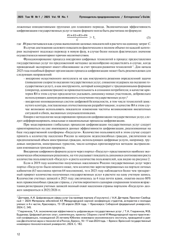 6. Гладченков, Т.А. экономическая эффективность цифровизации государственных услуг / Т. А. Гладченков, М.В. Буданова. Цифровой регион: опыт, компетенции, проекты: Сборник статей VI Международной научно-практической конференции, посвященной 25-летнему Юбилею инженерно-экономического института, проводимой в рамках Десятилетия науки и технологий в России, Брянск, 16-17 мая 2024 года. - Брянск: Брянский государственный инженерно-технологический университет, 2024. С. 178-185.
