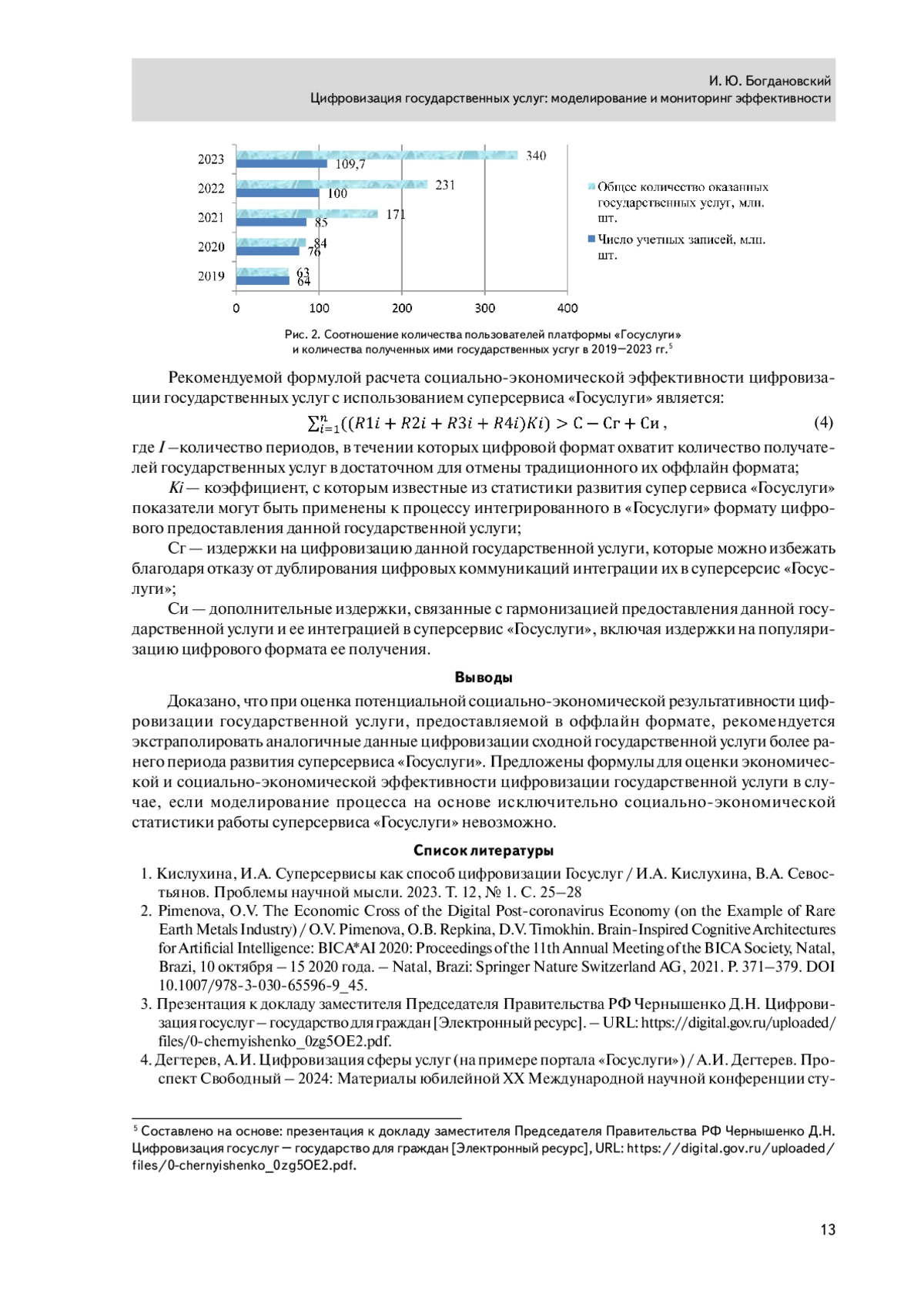 1. Кислухина, И.А. Суперсервисы как способ цифровизации Госуслуг / И.А. Кислухина, В.А. Севостьянов. Проблемы научной мысли. 2023. Т. 12, № 1. С. 25-28
