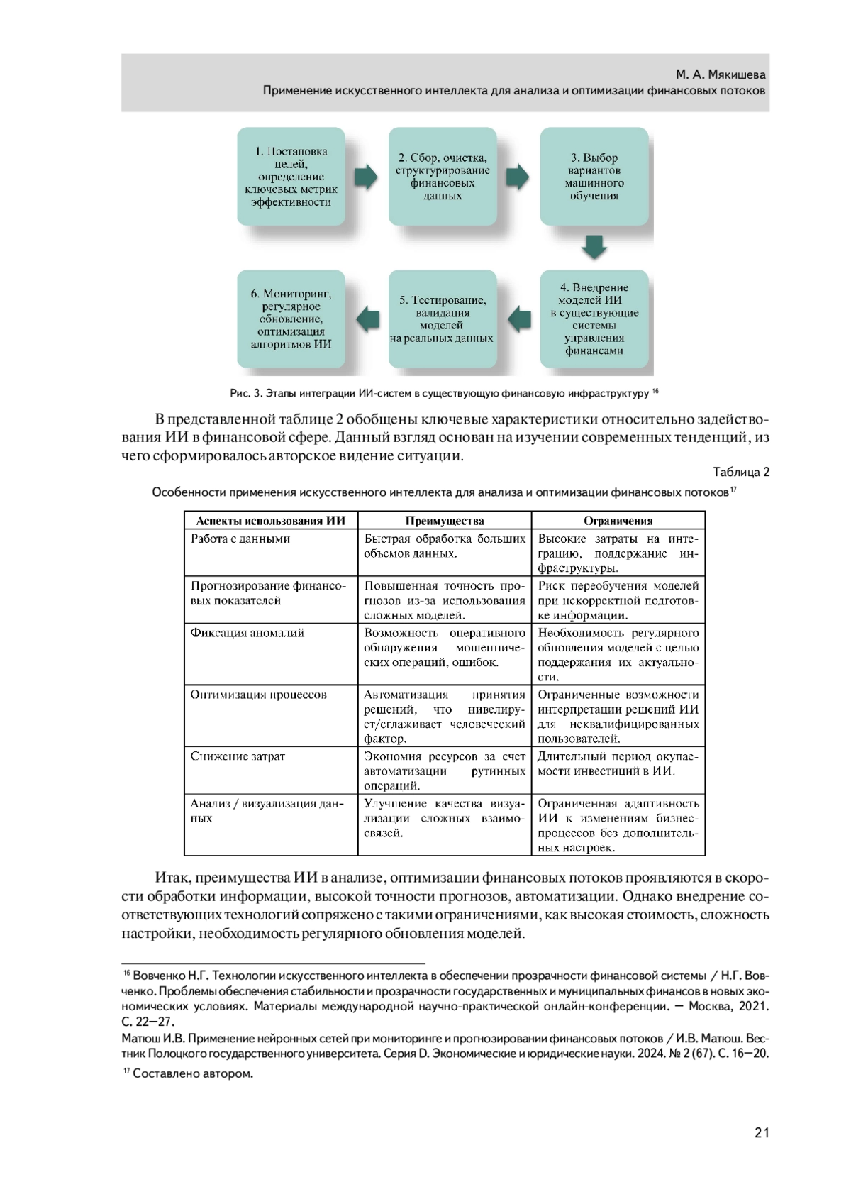 2. Вовченко Н.Г. Технологии искусственного интеллекта в обеспечении прозрачности финансовой системы / Н.Г. Вовченко. Проблемы обеспечения стабильности и прозрачности государственных и муниципальных финансов в новых экономических условиях. Материалы международной научно-практической онлайн-конференции. - Москва, 2021. С. 22-27.