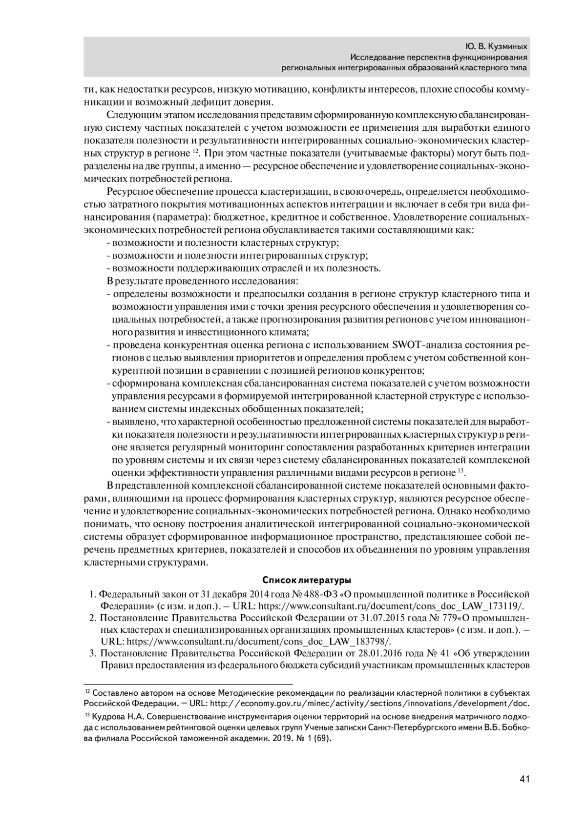 14. Методические рекомендации по реализации кластерной политики в субъектах Российской Федерации. - URL: http://economy.gov.ru/minec/activity/sections/innovations/development/doc.