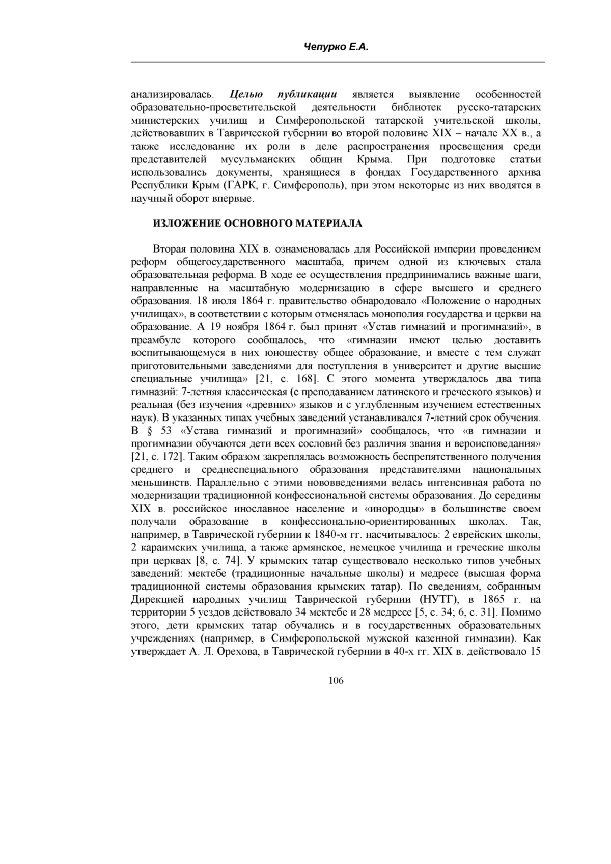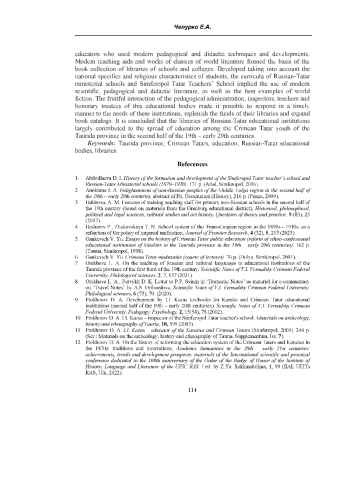 18. Якса, Н. В., Чемодуров, Н. Н. Подготовка педагогических кадров земствами Таврической губернии в начале ХХ века / Н. В. Якса, Н. Н. Чемодуров // Научный вестник Крыма. - 2017. - № 2(7). - С. 1-11. EDN: XVNSZJ