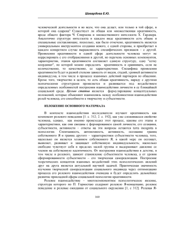 Способы взаимодействия и формирования ролевой идентичности связаны с общей способностью к творчеству: количество ролей, которые человек играет, соответствует способности генерировать идеи; уникальность исполнения ролей в небольшой группе соотносится с оригинальностью результатов деятельности; гибкость и глубина ролей связаны с гибкостью мышления и разработкой новых идей, которые реализуются в обществе. Представлены различные уровни взаимодействия и проявления ролевой идентичности, которые соответствуют критериям творчества: от простого исполнителя ролей до активного субъекта. Творческий аспект процессов ролевого взаимодействия называется ролевым творчеством, которое позволяет человеку успешно выполнять множество задач в современном обществе, гибко переходить от одной роли к другой, выбирать социальные роли и заполнять их индивидуальным содержанием, делая их уникальными.