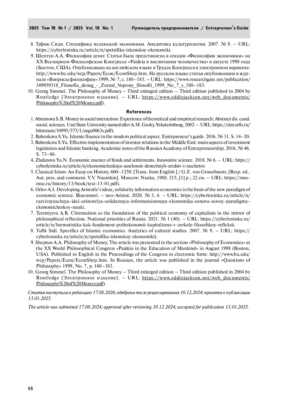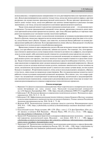 2. Бабенкова С.Ю. Исламские финансы в современном политическом аспекте. Путеводитель пред принимателя. 2016. № 31. С. 14-20.