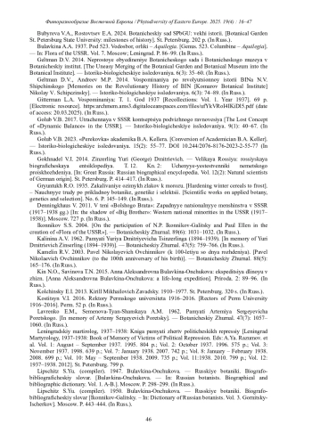 6. [Geltman] Гельтман Д.В. 2014. Непростое объединение Ботанического сада и Ботанического музея в Ботанический институт. - Историко-биологические исследования. 6(3): 35-60. EDN: SMXIBH