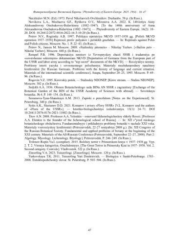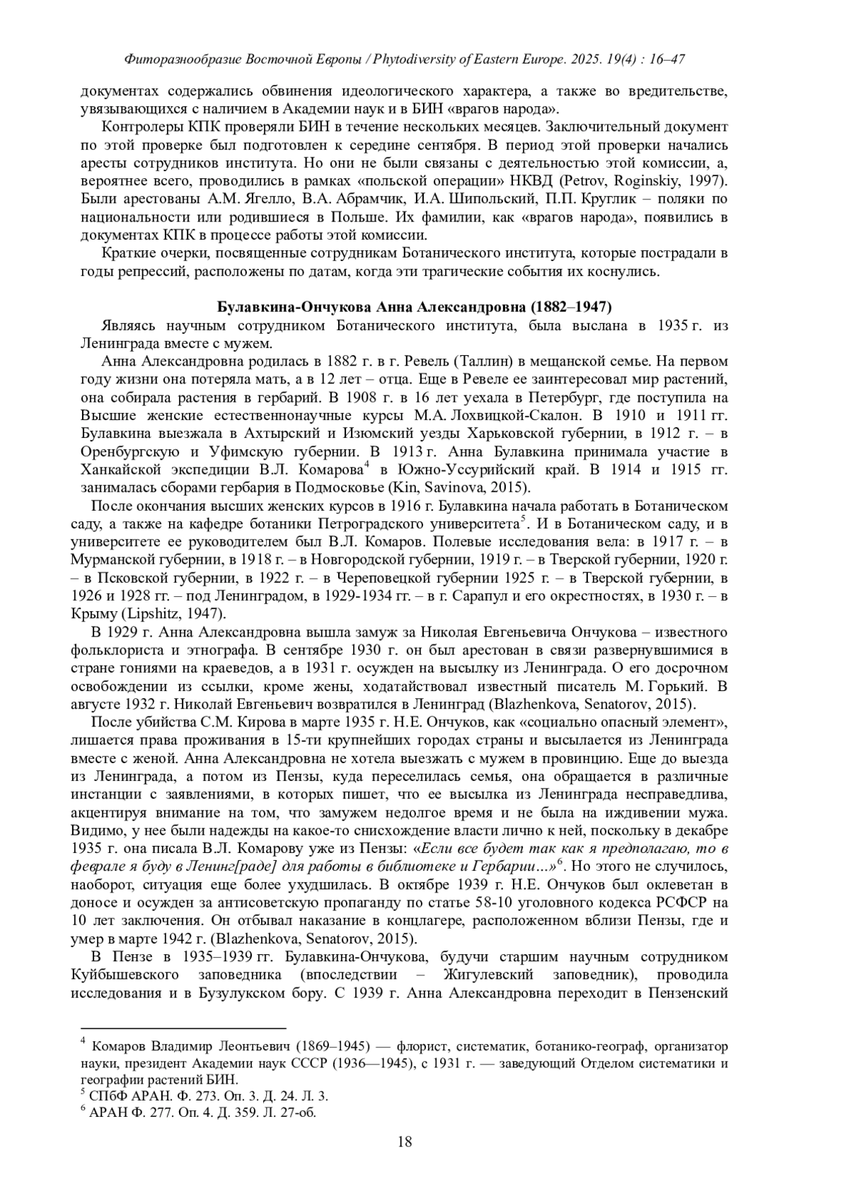 26. [Nonikova et al.] Новикова Л.А., Можаева Г.Ф., Рытикова О.В., Миронова А.А. 2022. К 140-летию Анны Александровны Ончуковой-Булавкиной (1882-1947). - Фиторазнообразие Восточной Европы. 16(2): 10-20. DOI: 10.24412/2072-8816-2022-16-3-10-20 EDN: KPKYZC