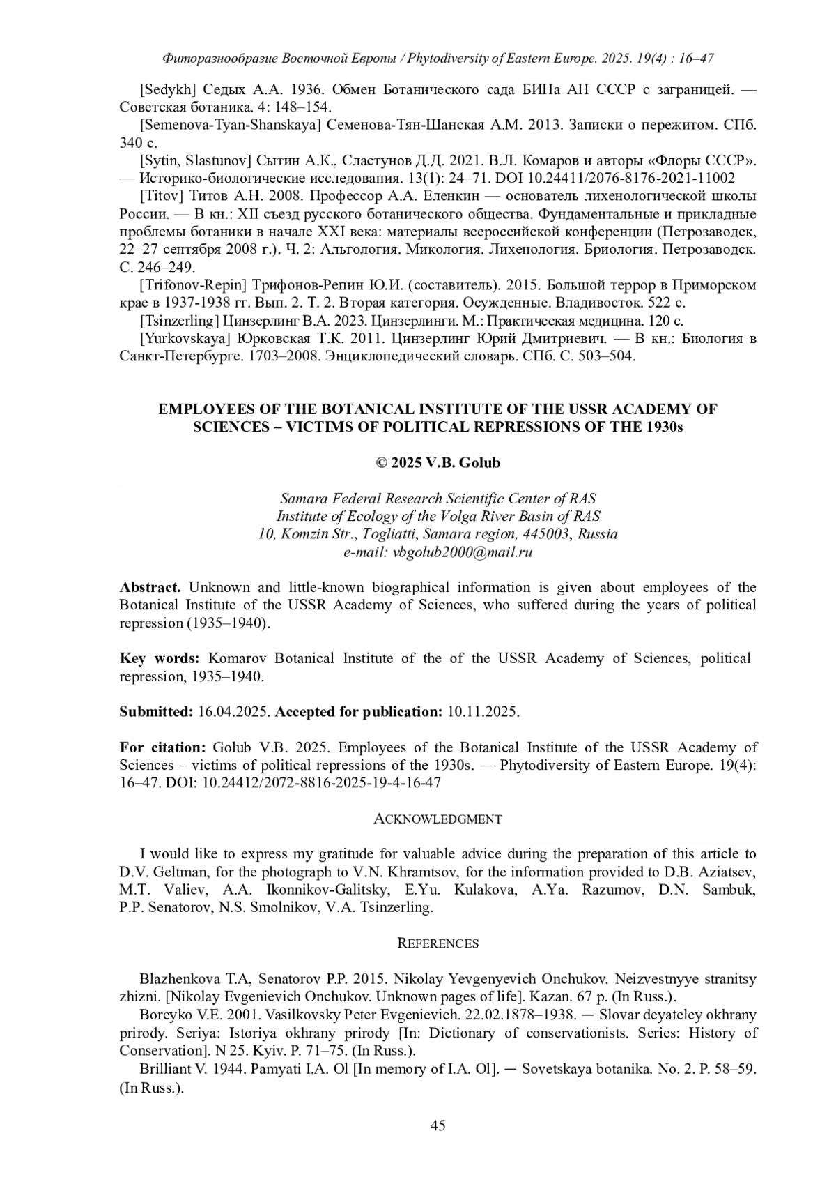 33. [Sytin, Slastunov] Сытин А.К., Сластунов Д.Д. 2021. В.Л. Комаров и авторы “Флоры СССР”. - Историко-биологические исследования. 13(1): 24-71. DOI: 10.24411/2076-8176-2021-11002 EDN: BHMPCR