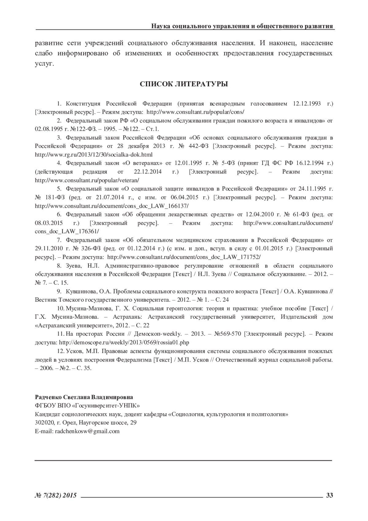 12. Усков, М.П. Правовые аспекты функционирования системы социального обслуживания пожилых людей в условиях построения Федерализма [Текст] / М.П. Усков // Отечественный журнал социальной работы. - 2006. - №2. - С. 35.