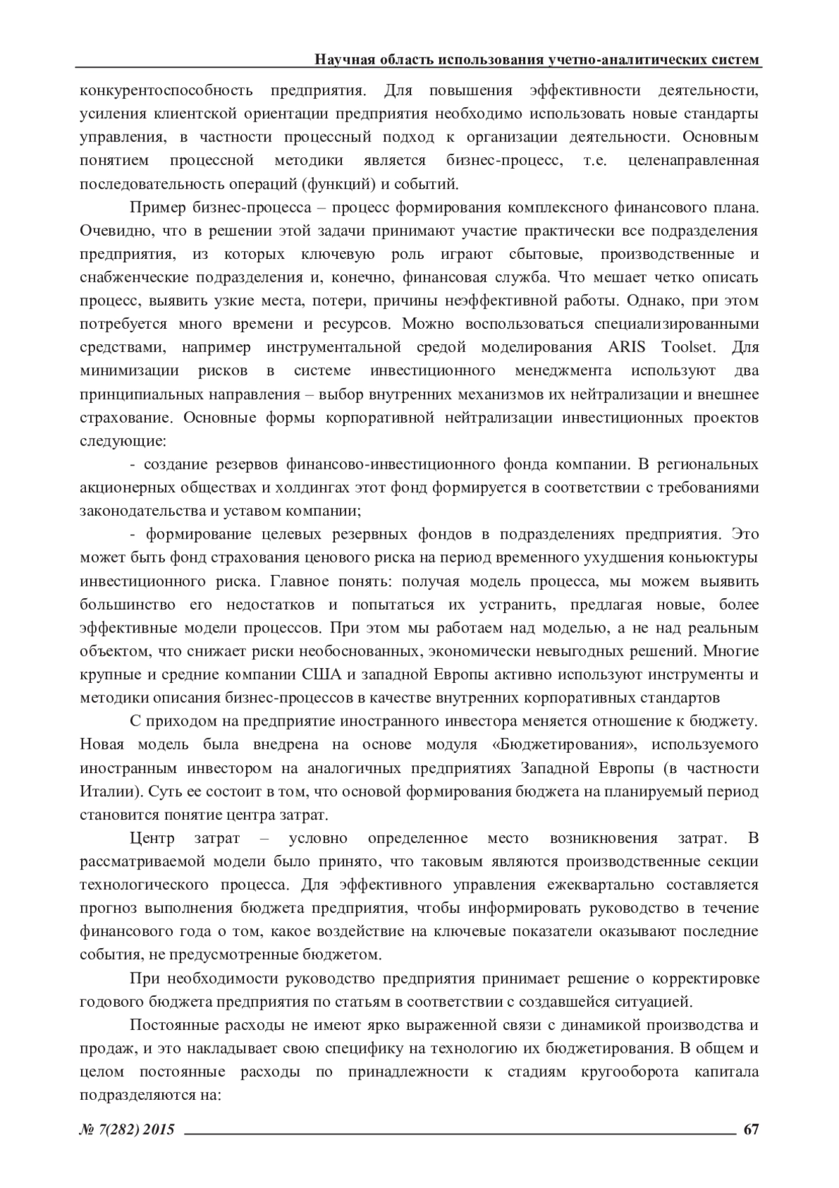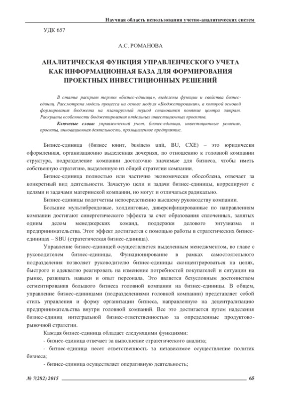 Ключевые фразы: УПРАВЛЕНЧЕСКИЙ УЧЕТ, бизнес-единица, ИНВЕСТИЦИОННЫЕ РЕШЕНИЯ, проекты, инновационная деятельность, промышленное предприятие