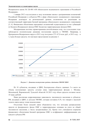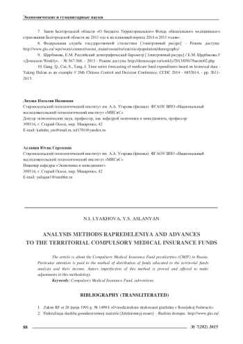Статья: АНАЛИЗ МЕТОДИКИ РАПРЕДЕЛЕНИЯ И ПРЕДОСТАВЛЕНИЯ СРЕДСТВ В ТЕРРИТОРИАЛЬНЫЕ ФОНДЫ ОБЯЗАТЕЛЬНОГО МЕДИЦИНСКОГО СТРАХОВАНИЯ (2015)