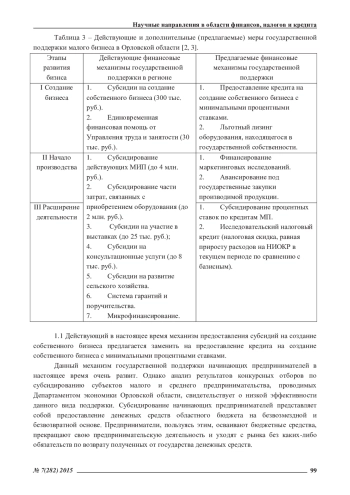 Рассмотрены новые антикризисные меры поддержки малого бизнеса, предложенные в 2015 году Правительством РФ. Определена система мер финансовой поддержки малого бизнеса в Орловской области. Предложены государственные меры финансовой поддержки малого бизнеса в Орловской области, которые могут дать ускоренное развитие предпринимательству в Орловской области