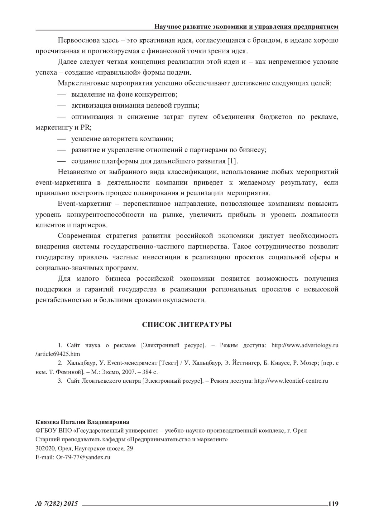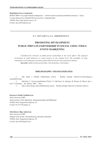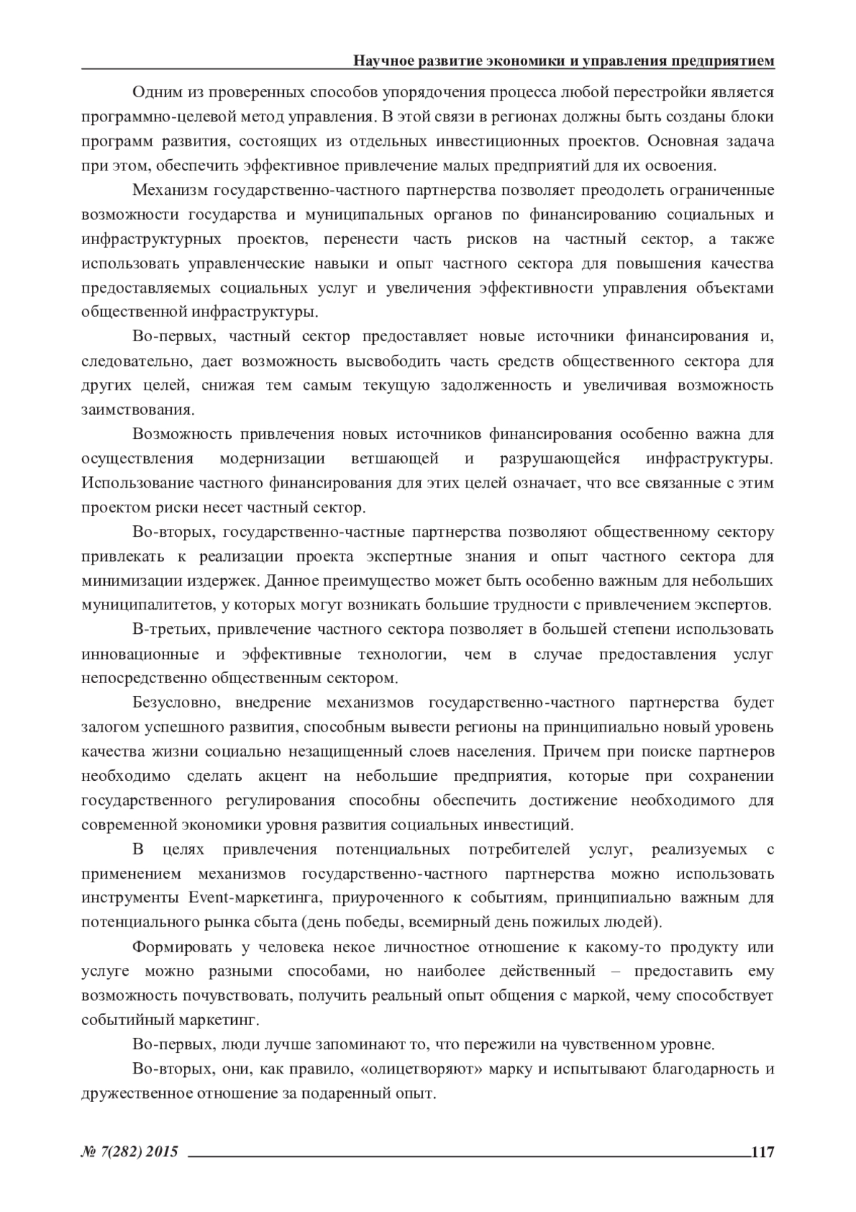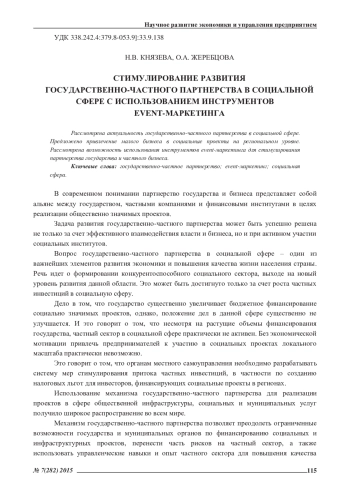 Статья: СТИМУЛИРОВАНИЕ РАЗВИТИЯ ГОСУДАРСТВЕННО-ЧАСТНОГО ПАРТНЕРСТВА В СОЦИАЛЬНОЙСФЕРЕ С ИСПОЛЬЗОВАНИЕМ ИНСТРУМЕНТОВ EVENT-МАРКЕТИНГА (2015)