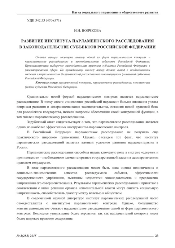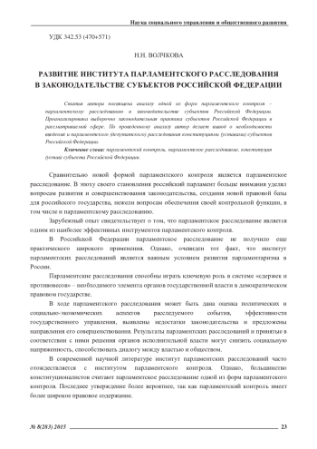 Сравнительно новой формой парламентского контроля является парламентское расследование. В эпоху своего становления российский парламент больше внимания уделял вопросам развития и совершенствования законодательства, создания новой правовой базы для российского государства, нежели вопросам обеспечения своей контрольной функции, в том числе и парламентскому расследованию.