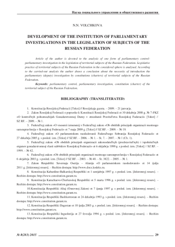 7. Закон Республики Северная Осетия - Алания «О парламентском расследовании» от 14 июля 2011 г. [Эктронный ресурс]. - Режим доступа: http://www.docs.kodeks.ru.