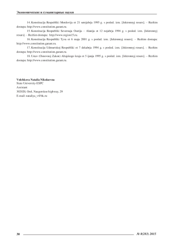 15. Конституция Республики Северная Осетия - Алания от 12 ноября 1994 г. с послед. изм. [Эктронный ресурс]. - Режим доступа: http://www.region15.ru.