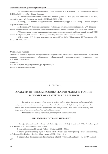 В статье проведен обзор мнений различных авторов о сущности и содержании категории «рынок труда», на основе чего дано авторское определение регионального рынка труда и его основных характеристик (занятости и безработицы). Автором обоснована актуальность и значимость статистического исследования регионального рынка труда