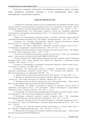 Статья: МОДЕЛИРОВАНИЕ НАЛОГОВОЙ ПОЛИТИКИ В СОВРЕМЕННЫХ ЭКОНОМИЧЕСКИХ И ПОЛИТИЧЕСКИХ УСЛОВИЯХ (2015)