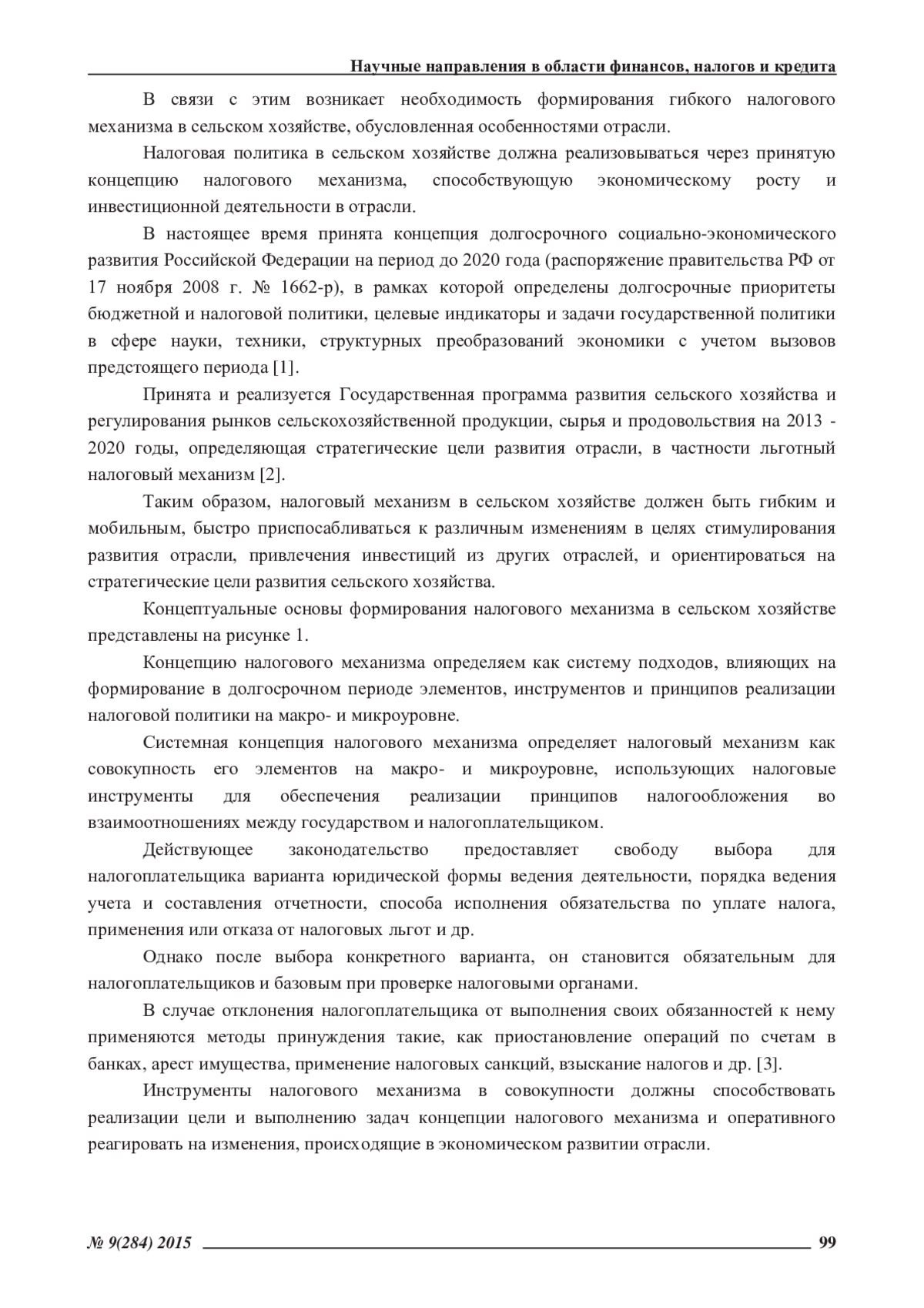 На современном этапе развития экономики России особое значение принадлежит реформированию структурных элементов налогового механизма как основного инструмента реализации налоговой политики государства. Однако осуществляемые налоговые преобразования в различных сферах экономики не дают желаемого эффекта, так как не в полной мере учитывают специфику отрасли и финансовое положение налогоплательщиков. Особенно остро данная проблема проявляется в отношении отрасли селького хозяйства. В связи с этим рассмотрим концептуальные основы налогового механизма с уклоном на отраслевую специфику – сельское хозяйство