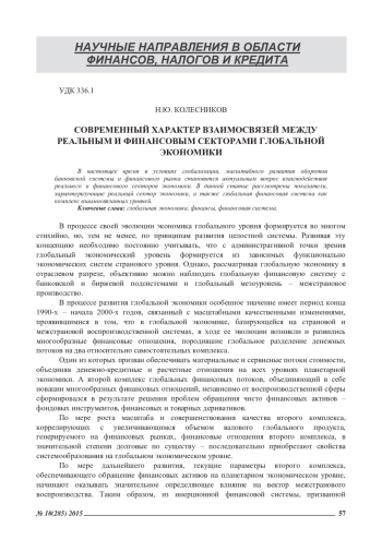 В настоящее время в условиях глобализации, масштабного развития оборотов банковской системы и финансового рынка становится актуальным вопрос взаимодействия реального и финансового секторов экономики. В данной статье рассмотрены показатели, характеризующие реальный сектор экономики, а также глобальная финансовая система как комплекс взаимосвязанных уровней