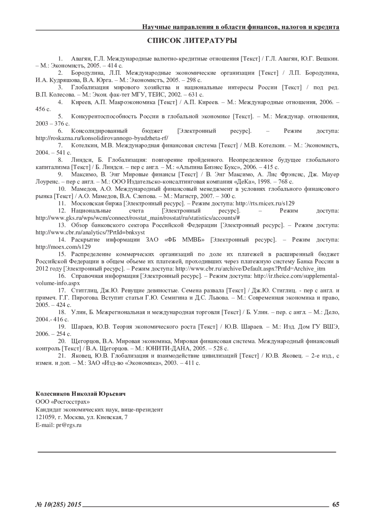3. Глобализация мирового хозяйства и национальные интересы России [Текст] / под ред. В.П. Колесова. - М.: Экон. фак-тет МГУ, ТЕИС, 2002. - 631 с. EDN: ZERGKH