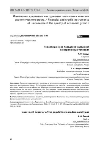2. Переверзева А.А. Инвестиционное поведение физических лиц на финансовом рынке: концептуальная модель оценки. Российский экономический интернетжурнал. 2021. № 2.